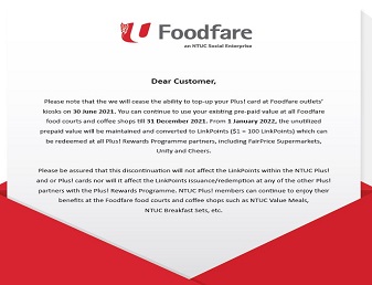 The Plus! Card top-up function at FoodFare will cease with ...